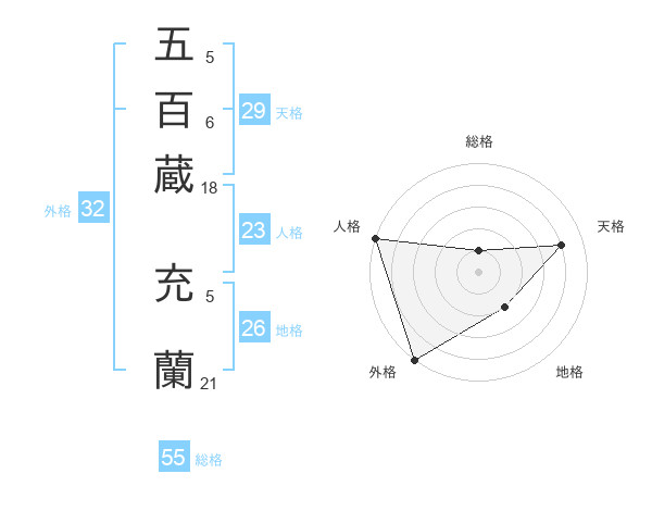 五百蔵 充蘭さんの外格は32画の5点!