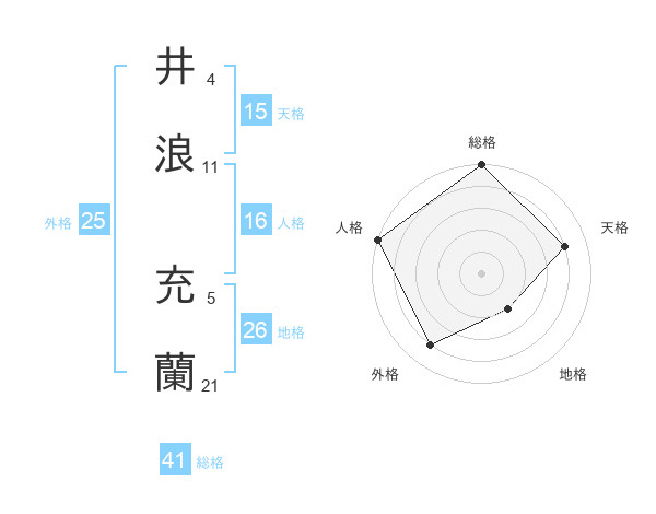 井浪 充蘭さんを姓名の画数から五運を鑑定