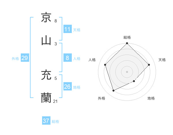 京山 充蘭さんの総格は37画の5点!