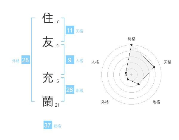住友 充蘭さんを姓名の画数から五運を鑑定