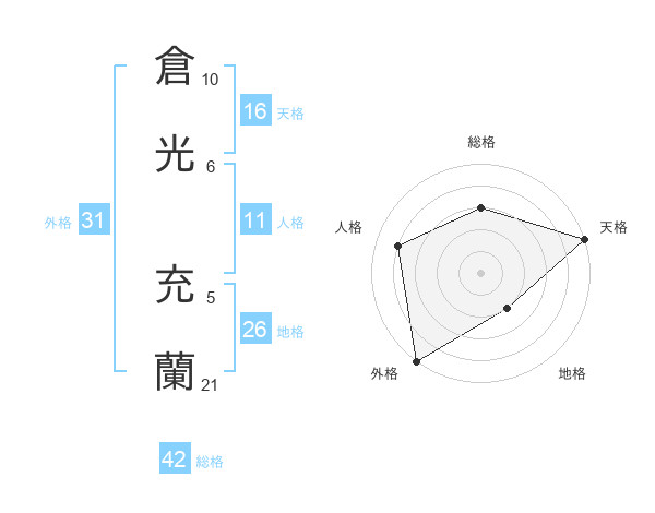 倉光 充蘭さんを姓名の画数から五運を鑑定