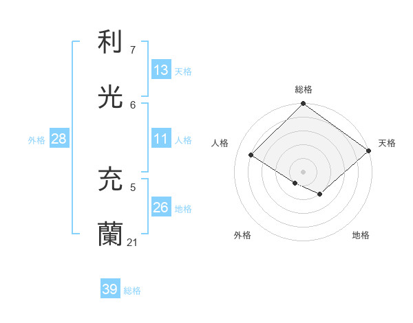 利光 充蘭さんの天格は13画の5点!