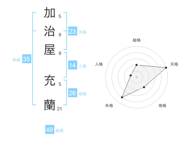 加治屋 充蘭さんの天格は23画の5点