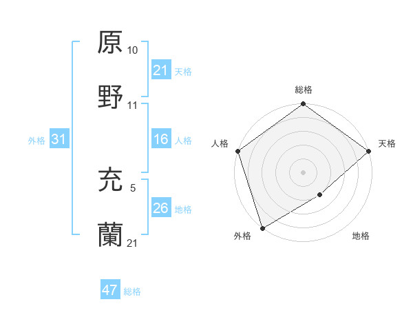 原野 充蘭さんの総格は47画の5点!