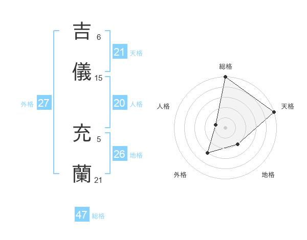 吉儀 充蘭さんの総格は47画の5点!