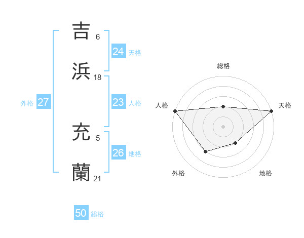 吉浜 充蘭さんの総格は50画の2点!