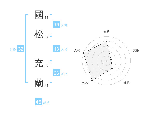 國松 充蘭さんの総格は45画の4点!