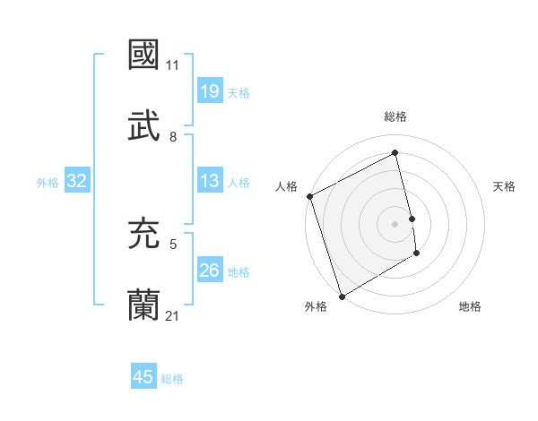 國武 充蘭さんを姓名の画数から五運を鑑定