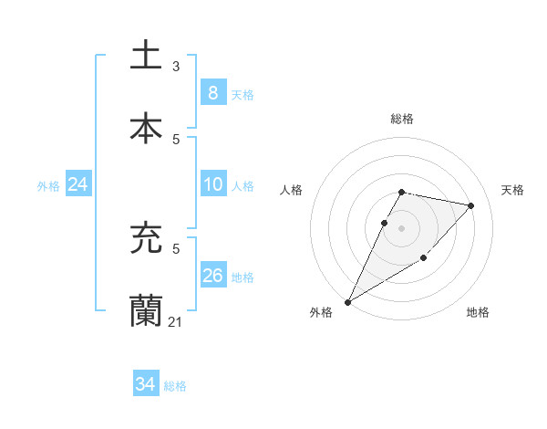 土本 充蘭さんの総格は34画の2点!