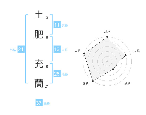 土肥 充蘭さんを姓名の画数から五運を鑑定