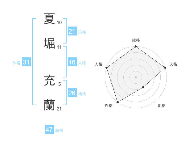 夏堀 充蘭さんの天格は21画の5点!