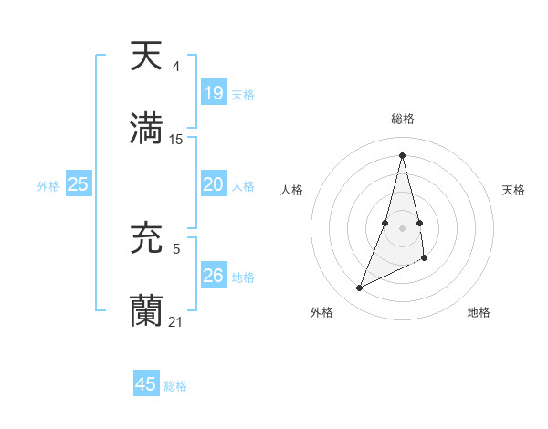 天満 充蘭さんの総格は45画の4点!