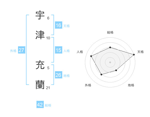 宇津 充蘭さんの総格は42画の3点!