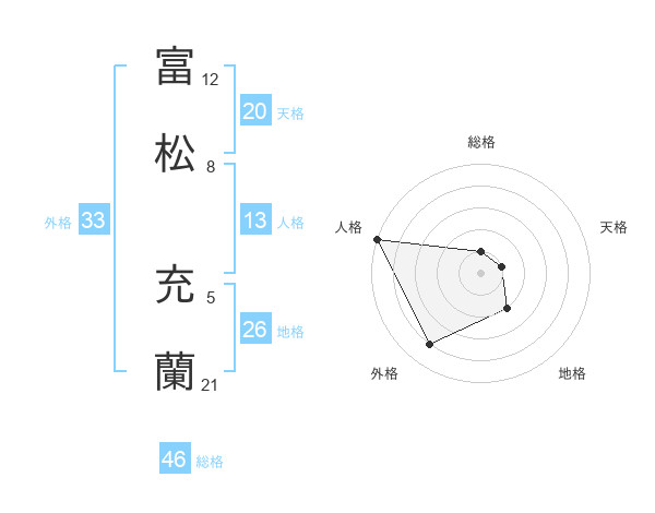 富松 充蘭さんを姓名の画数から五運を鑑定