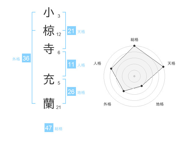小椋寺 充蘭さんを姓名の画数から五運を鑑定