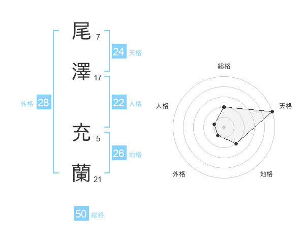 尾澤 充蘭さんの天格は24画の5点!