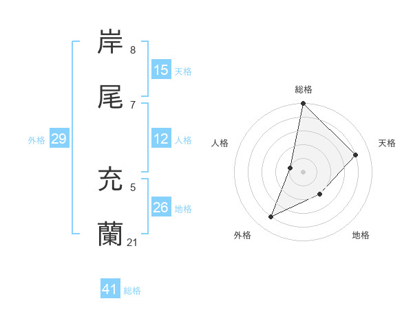 岸尾 充蘭さんの総格は41画の5点!