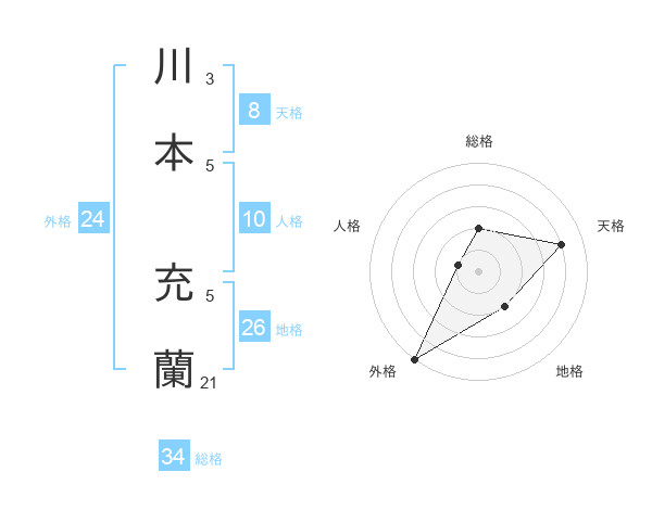 川本 充蘭さんの外格は24画の5点!
