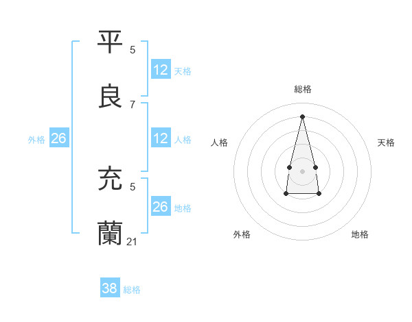 平良 充蘭さんの総格は38画の4点!
