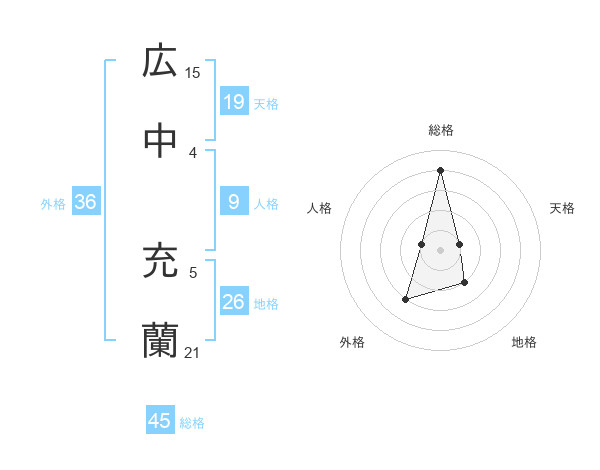 広中 充蘭さんの総格は45画の4点!