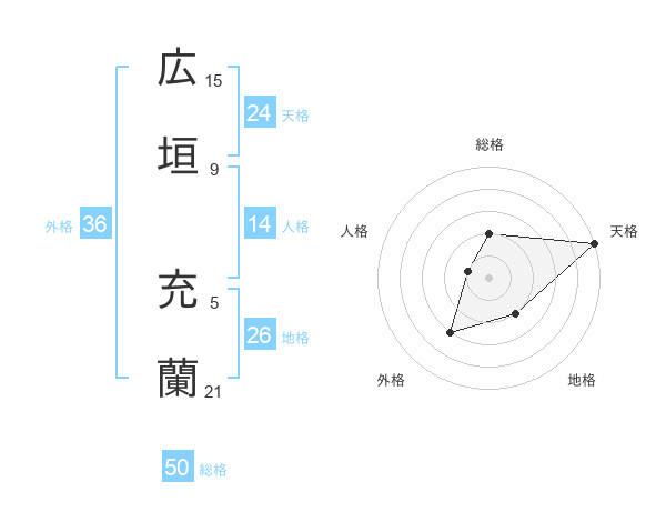 広垣 充蘭さんの総格は50画の2点!