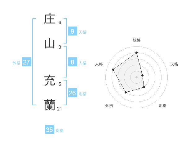 庄山 充蘭さんの総格は35画の4点!