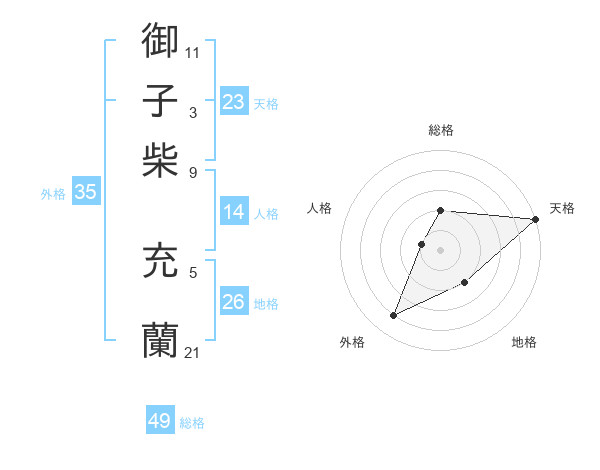 御子柴 充蘭さんを姓名の画数から五運を鑑定