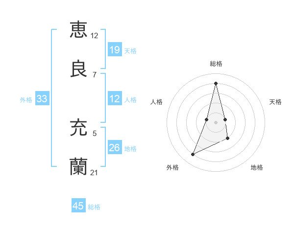 恵良 充蘭さんの総格は45画の4点!