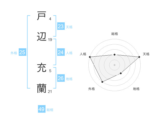 戸辺 充蘭さんを姓名の画数から五運を鑑定
