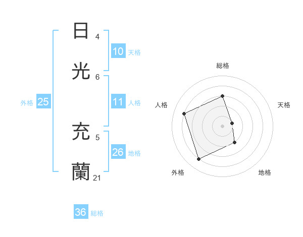 日光 充蘭さんを姓名の画数から五運を鑑定