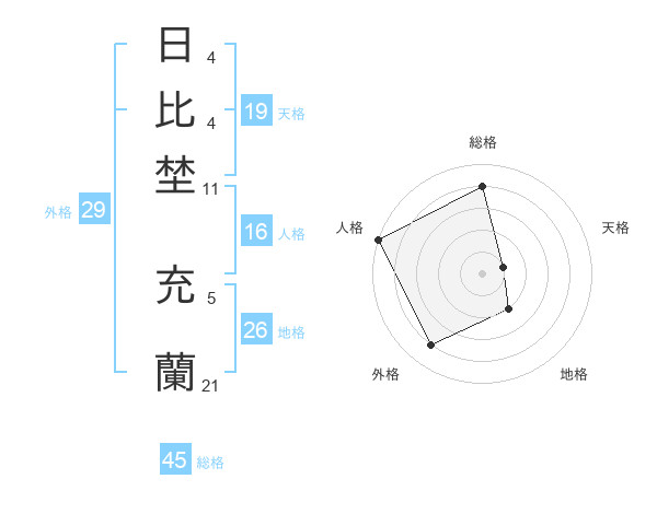 日比埜 充蘭さんの総格は45画の4点!