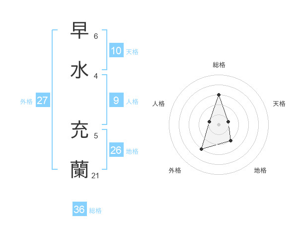 早水 充蘭さんを姓名の画数から五運を鑑定