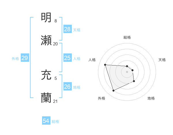 明瀬 充蘭さんの総格は54画の1点!