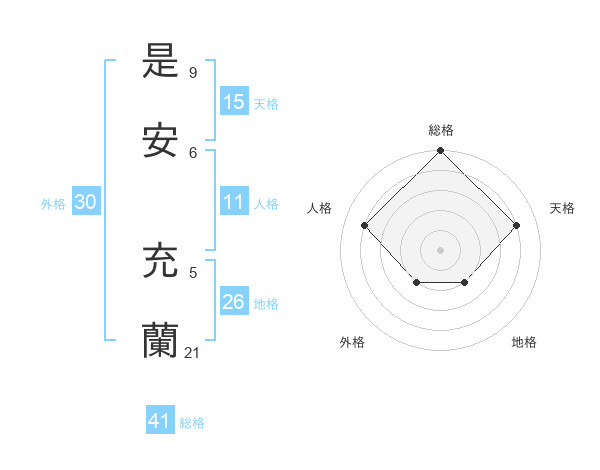 是安 充蘭さんの総格は41画の5点!