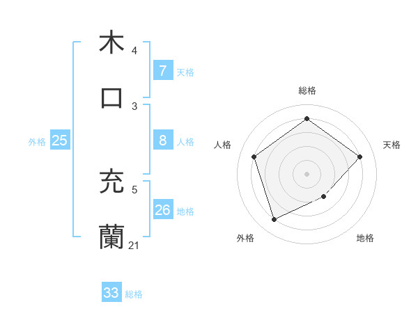 木口 充蘭さんの総格は33画の4点!