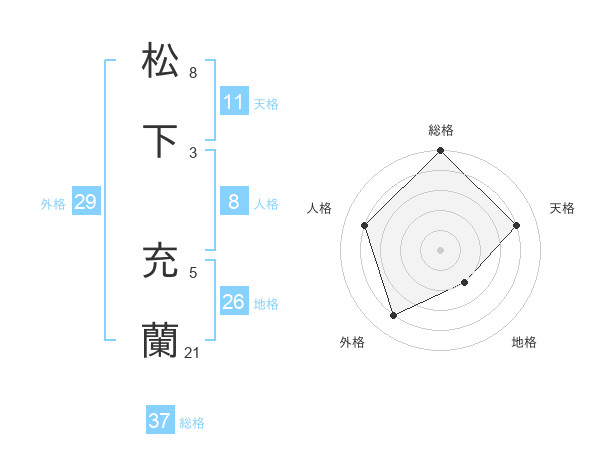 松下 充蘭さんを姓名の画数から五運を鑑定