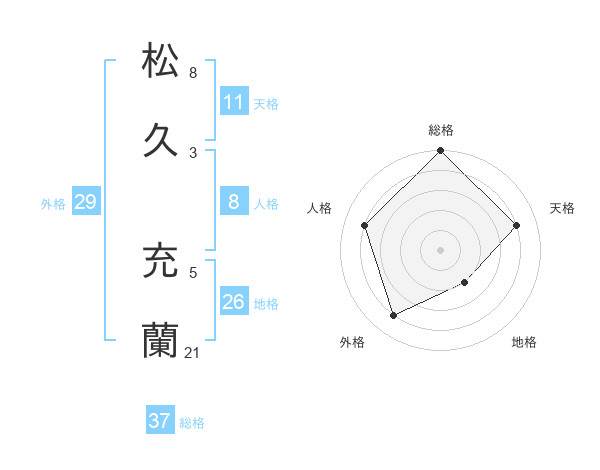 松久 充蘭さんの総格は37画の5点!