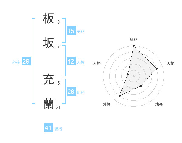 板坂 充蘭さんの総格は41画の5点!