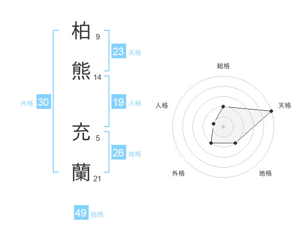 柏熊 充蘭さんを姓名の画数から五運を鑑定