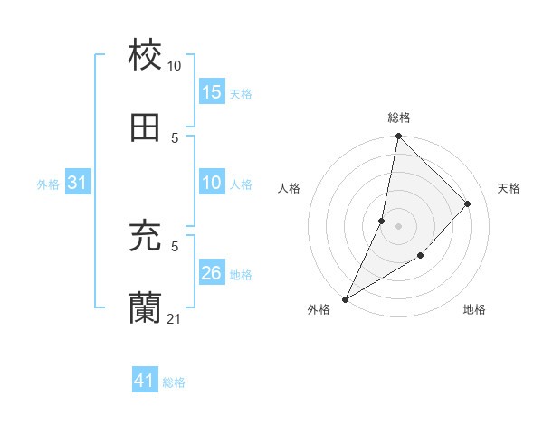 校田 充蘭さんを姓名の画数から五運を鑑定