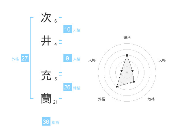 次井 充蘭さんを姓名の画数から五運を鑑定