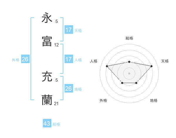 永富 充蘭さんの天格は17画の4点!