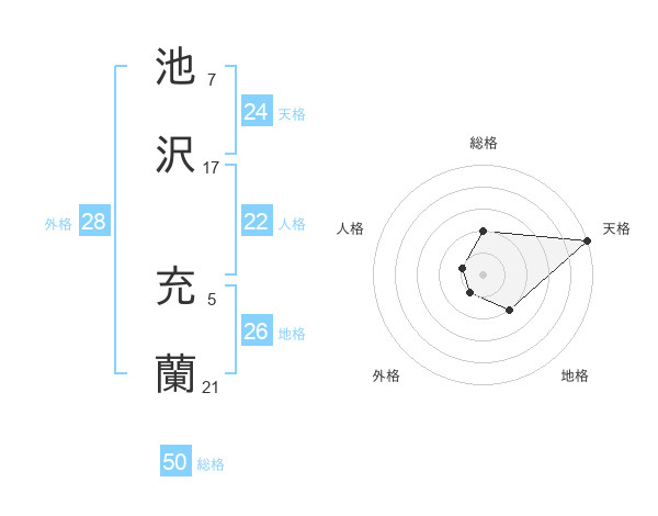 池沢 充蘭さんの総格は50画の2点!
