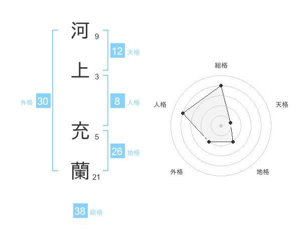 河上 充蘭さんを姓名の画数から五運を鑑定