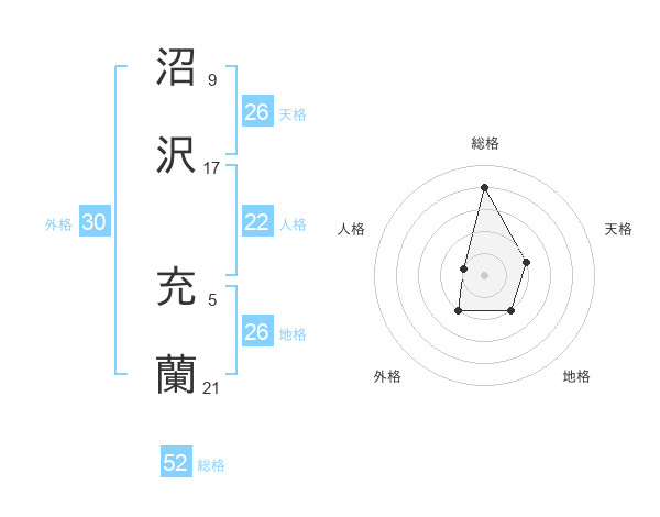 沼沢 充蘭さんを姓名の画数から五運を鑑定