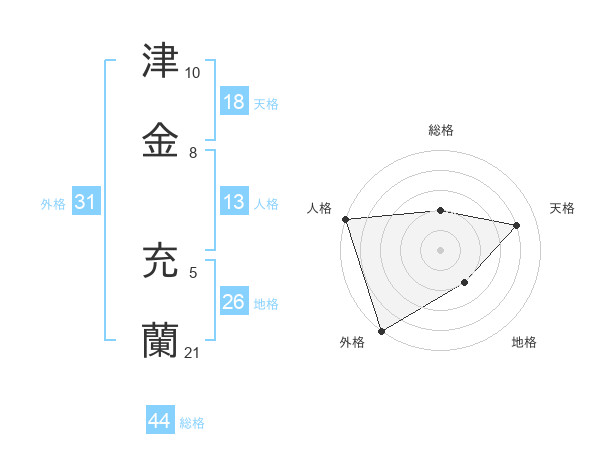 津金 充蘭さんを姓名の画数から五運を鑑定