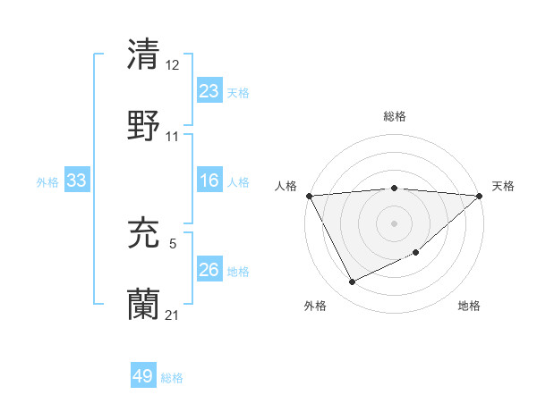 清野 充蘭さんの天格は23画の5点!