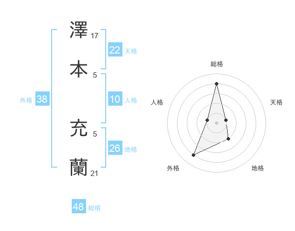澤本 充蘭さんを姓名の画数から五運を鑑定