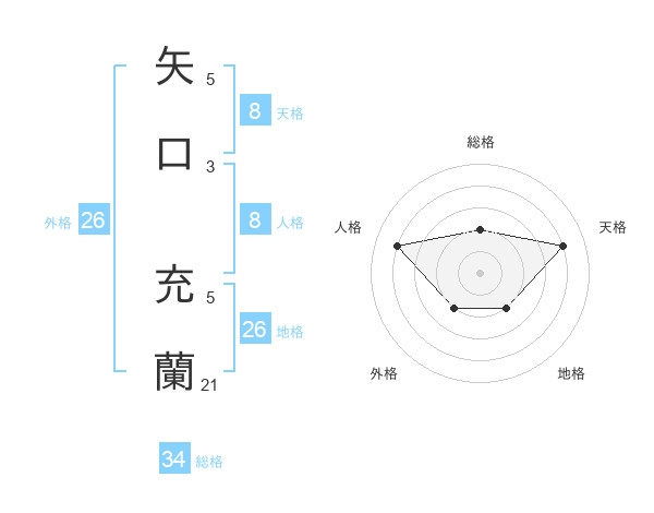 矢口 充蘭さんの地格は26画の2点!