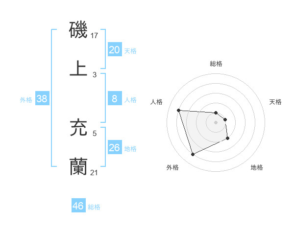 磯上 充蘭さんの外格は38画の4点!